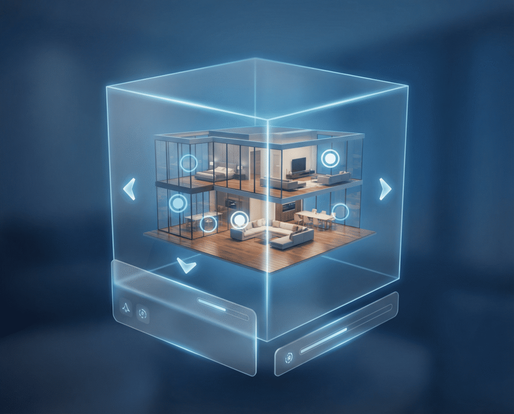 Immersive 3D-Rundgänge, die Räume digital erlebbar machen, Vertrauen aufbauen und Kauf- sowie Kontaktentscheidungen messbar beschleunigen.
