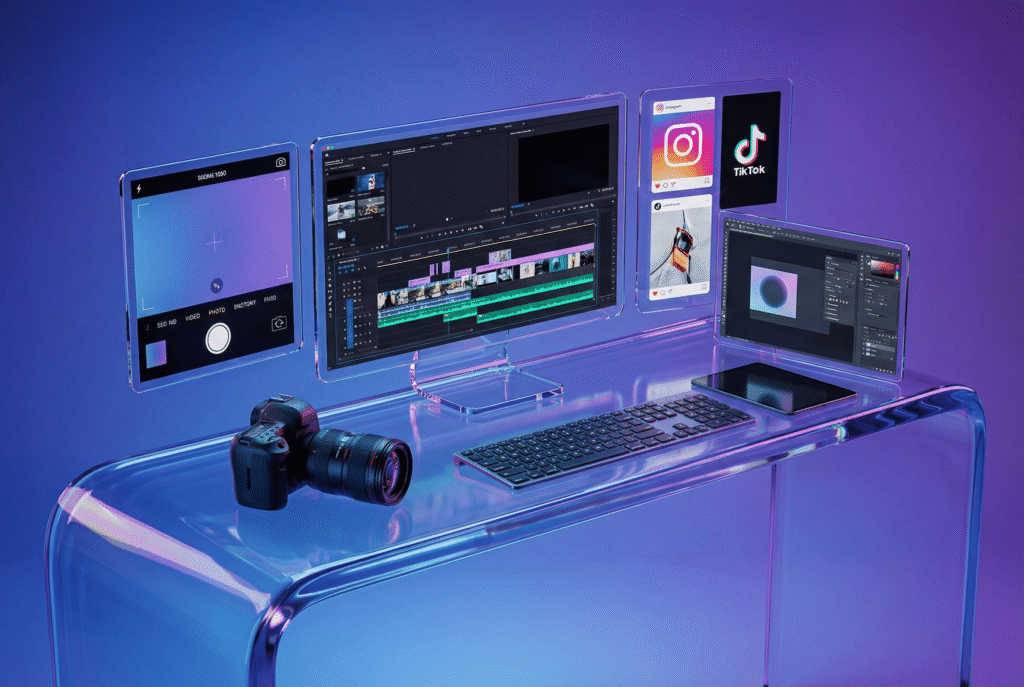 Unsere Leistungen greifen ineinander – von der klaren Strategie über hochwertiges Design bis zur messbaren Performance.